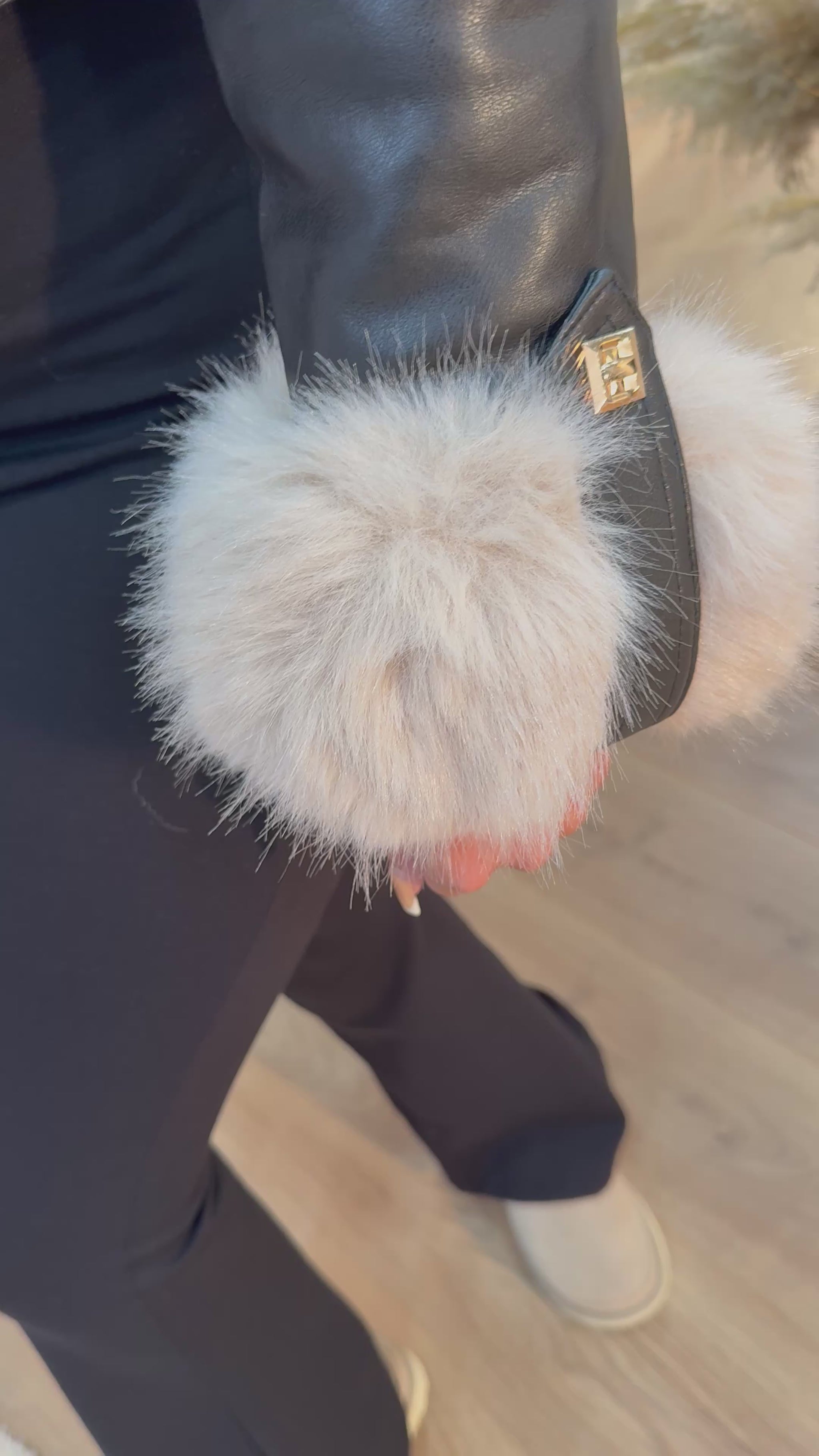 Command attention with this faux leather and fur jacket, a masterclass in contemporary opulence. Crafted from buttery-soft vegan leather, it features a sumptuous faux fur collar, cuffs, and full inner lining that envelop you in warmth and sophistication. The structured silhouette flatters effortlessly, while gleaming gold button fastenings add a touch of refined glamour.